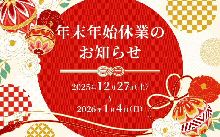 いただいたお問い合わせにつきましては、2026年1月5日(月)より順次ご返信いたします。休業中はご不便をおかけいたしますが、何卒ご了承くださいますようお願い申し上げます。